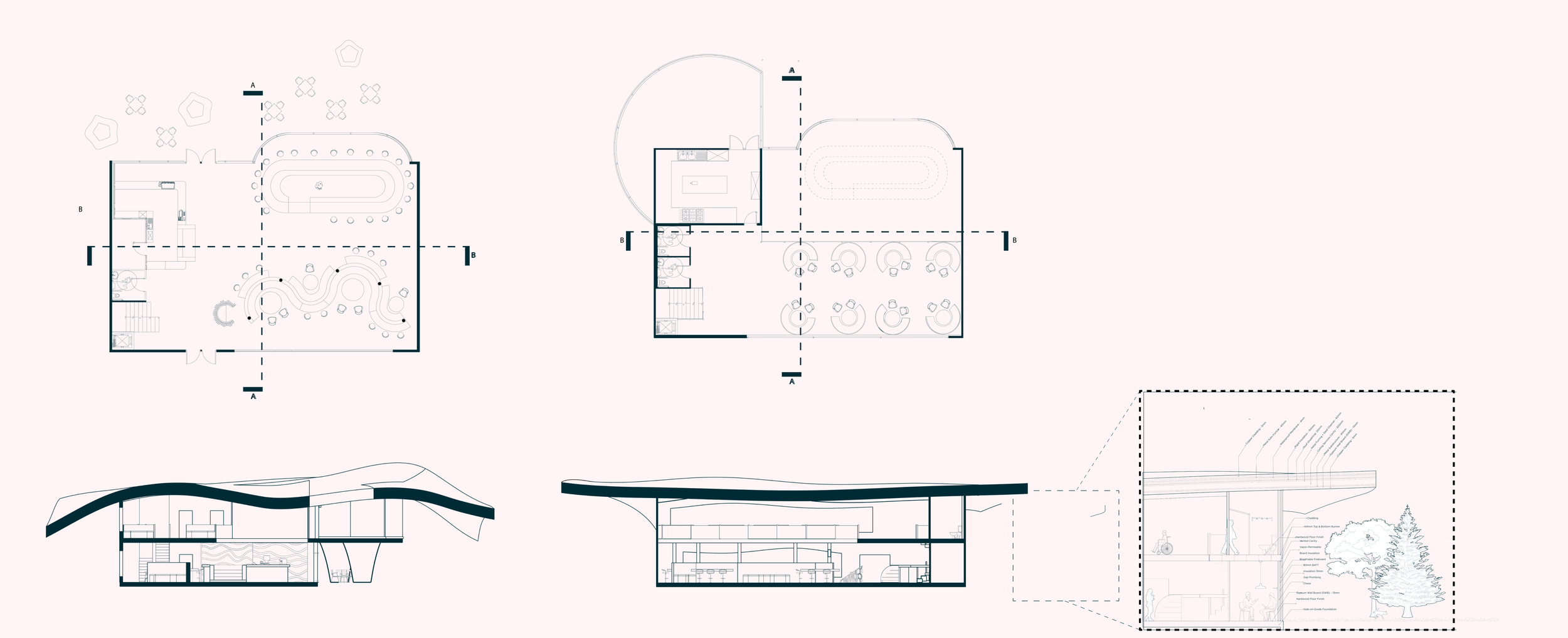 The Undertow is a restaurant and grab-and-go destination that immerses visitors in the layered history of the Lost Villages through evocative materiality, fluid forms, and atmospheric design. Rooted in themes of memory and water, the space captures the quiet power of the St. Lawrence’s transformation while offering a contemporary culinary experience.
